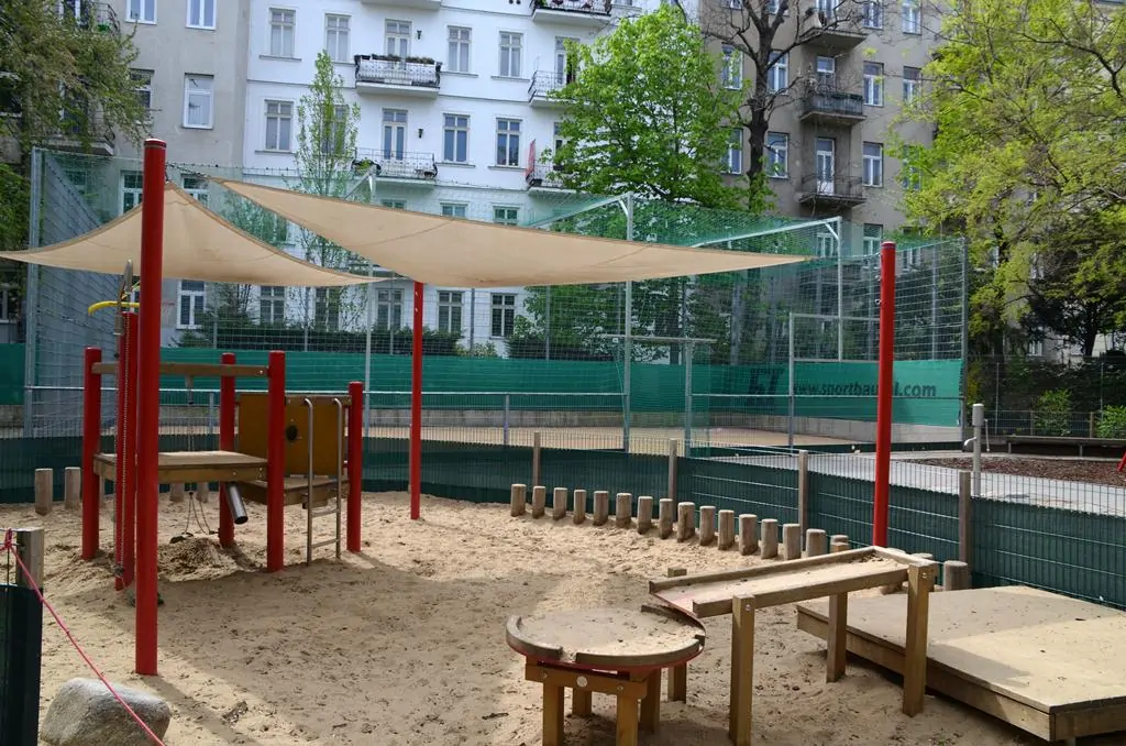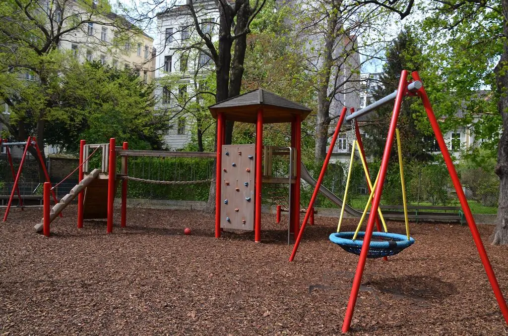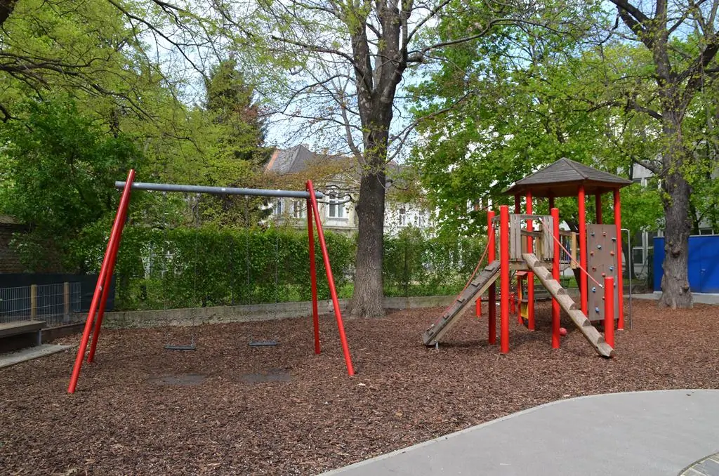 Kinderspielplatz mit Schaukeln, Rutschen und Klettermöglichkeit